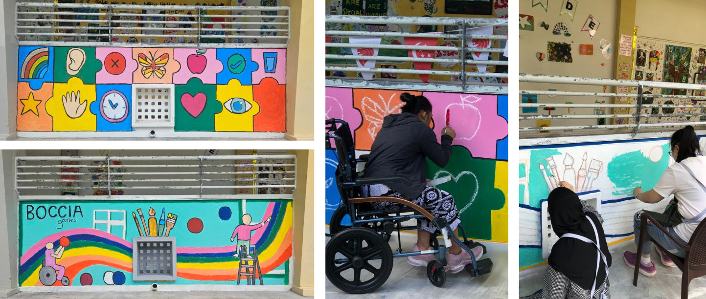 At SUNDAC Upper Thomson, creativity comes alive through Paint with Me2, an inclusive arts programme designed to empower adults with disabilities through colour, expression, and community. Over the past months, our Me2 arts team has been working closely with SUNDAC clients to transform the centre’s walls into vibrant visual stories that reflect joy, identity, and shared experiences.