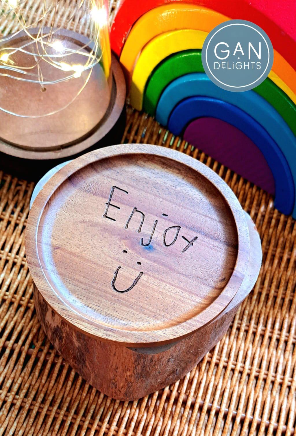 We always find joy when we plate our handcrafted bakes onto this Enjoy 🙂 Coaster/Small plate. Each plate carries a piece of Cal’s innocence, reminding us to savor the simple pleasures in life.