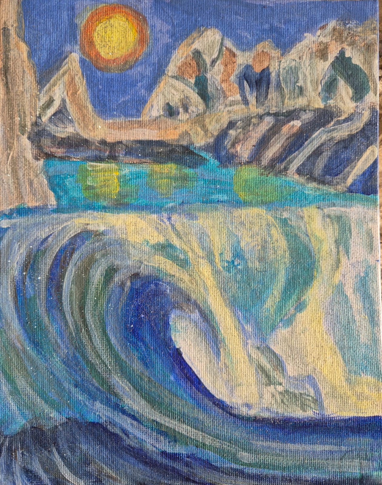Joanna recalled the big waves that she saw at the beach and also other scenes that she saw when we took the ferry during a holiday trip.